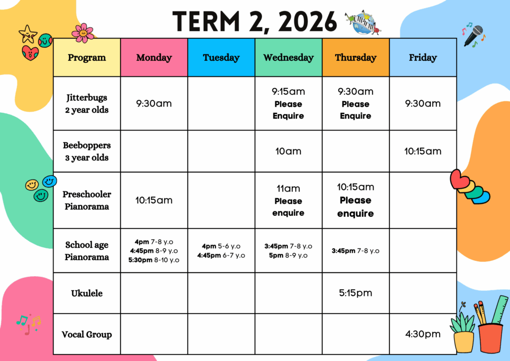 Pianorama CLASS TIMES: Term 2, 2026*